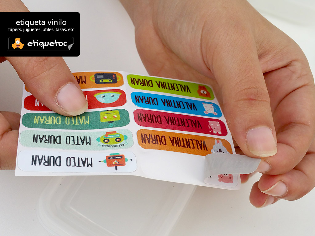 Con etiquetoc podes diseñar etiquetas personalizadas de la forma más rápida y simple. Las etiquetas son de dos tipos: vinilo laminado para en útiles escolares, tapers, cuadernos o inclusive para championes y transfer para utilizar en ropa, delantales, bolsos, etc.